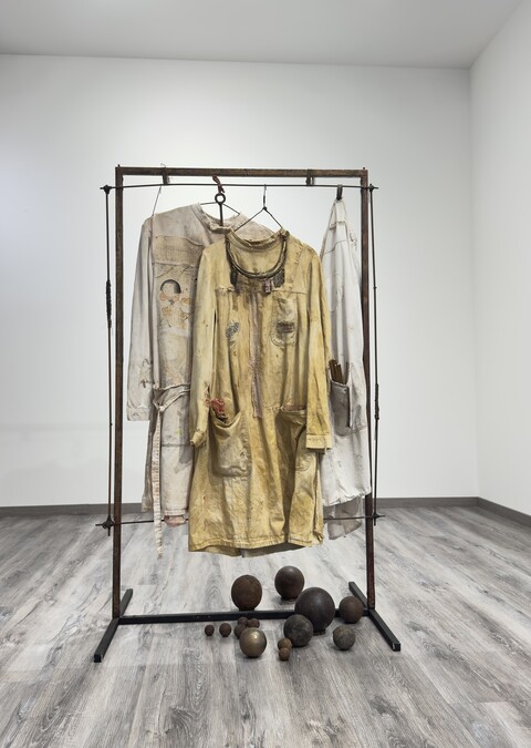 Ihre Skulpturen sind vielschichtige Assemblagen aus objets trouvés, die sie zu figuralen und symbolischen Gebilden fügt. Die Materialien – zerschlissen, verrostet, verblasst – erzählen von Gebrauch, Zeit und Transformation. Indem Eri Hahn sie neu ordnet, verleiht sie ihnen Würde und Schönheit.