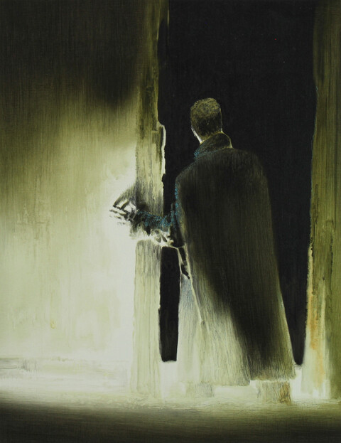Heinz Rabbow ist Autodidakt – aber auch Philosoph, Pädagoge und feiner Beobachter des Menschlichen. Seine Werke strahlen Ruhe und Zartheit aus, getragen von technisch präziser Ausführung. Seine Maltechnik ist eng mit dem traditionellen „Grisaille“-Verfahren verbunden: eine monochrome Lasurtechnik in feinen Schichten, meist mit Ei-Tempera auf Holz. Durch den aufwändigen Aufbau aus bis zu zwanzig Farbschichten – besonders im Bereich von Haut und Augen – entsteht eine innere Leuchtkraft, die seine Figuren zugleich gegenwärtig und zeitlos wirken lässt. Sie erscheinen geisterhaft vertraut, fast überirdisch – mit einem Blick, der sowohl durchdringt als auch umarmt.