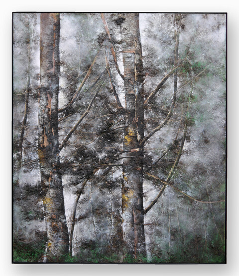 Andrea Esswein, * 1969, Germersheim, Deutschland, lebt und arbeitet in Mannheim, hat sich mit Ihren Copy Collagen (Kopigraphien und Copygramme) seit 1998 eine ganz eigenständige Positions erarbeitet und ist unverwechselbar. Sie verwendet die Kopiermaschine als fotografischen Apparat, mit welchem sie Kopieroriginale herstellt. Dafür legt Esswein Objekte, Pflanzen, Papiere, Tiere und Menschen auf den Kopierer. Aus den einzelnen abgelichteten Blättern, die entlang der Orthogonalen Stück für Stück wie Puzzleteile zusammengesetzt werden, entsteht als Collage ein neues Bild. Schnittstellen und Überlappungen bleiben auch nach der anschließenden Bearbeitung sichtbar. Durch die Collagetechnik entsteht ein fragmentiertes Bild, bei dem das ursprüngliche Motiv aus verschiedenen Perspektiven zugleich und in bewusst veränderter Größenanordnung erscheint. Der Künstlerin geht es dabei um die Konstruktion einer neuen Bildrealität, welche die gewohnte Perspektive verlässt.
