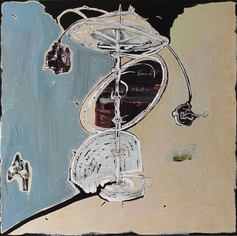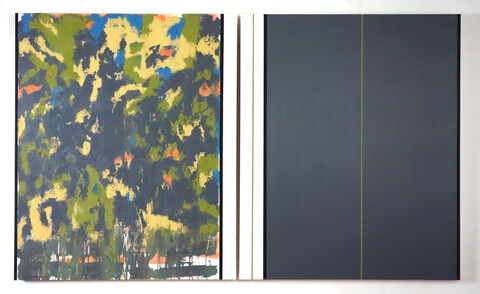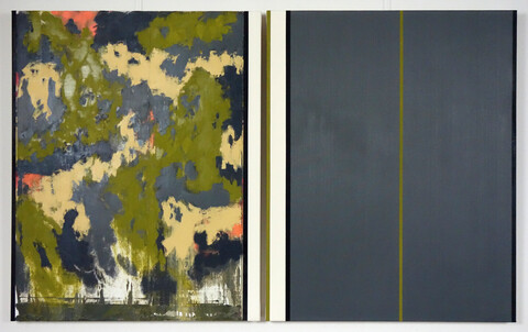 In seinen aktuellen Werken konzentriert sich Ernst Wolf auf mehrteilige Ölbilder. Zwei oder drei Bildtafeln bindet er in ein Ganzes ein. Die Bildtypen nennt er entsprechend „Bildpaar“, „Gleichzeit“ oder „Kollaboration“. Die Titel weisen sowohl auf ein künstlerisches Konzept hin, das die gleichzeitige Präsenz von Widersächlichem thematisiert und interpretiert. Eine solche wird schon in der, den ersten Eindruck prägenden Aufspaltung der Werke in zwei oder drei Teile deutlich. Einheit und Teilung stehen sich hier nicht gegenüber, sondern sind in einer Wahrnehmung gleichzeitig präsent. Wir ahnen bereits, dass es für eine Annäherung an die Bilder Ernst Wolfs erforderlich ist, in Gegensätzen zu sehen und zu denken. Statt einer Harmonie ist es Ernst Wolf wichtiger das Gegensätzliche einerseits in seiner jeweiligen wiedersprüchlichen Präsenz wirken zu lassen und gleichtzeitig in klarer, komplexer Weise zu verbinden.