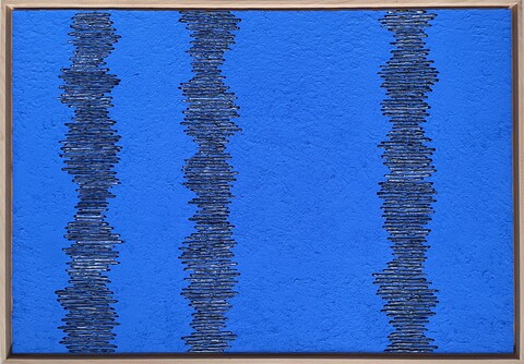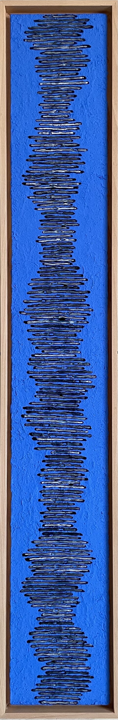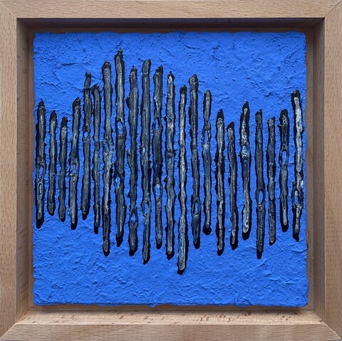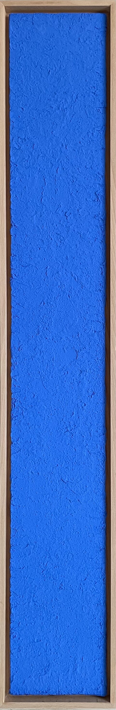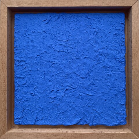 Sabine Becker inszeniert das Pigment Cobaltblau und schafft es die Reinheit und Wirkkraft diese Pigments im malerischen Prozess zu erhalten. Wenn andere Farben auftauchen, wie Miloriblau oder andere Primärfarben, dann dienen sie als Bühne für die komplexen Wirkungen ihres Cobaltblaus.