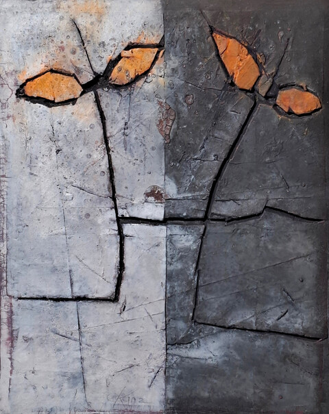 Nach dem Studium ging Gerd Kanz seinen eigenen Weg, ohne sich an Konventionen oder Ismen zu halten. Am ehesten könnte man das Informel als Ausgangspunkt seiner Entwicklung vermuten. Wenn es so wäre, dann ist er schon lange darüber hinausgewachsen. Seine Bilder wollen nicht Formen negieren, stattdessen sucht der Künstler nach Formen im Formlosen und lässt sie in seiner Malerei mit Bedacht und innerer Schau herauswachsen. In einer alten Brauerei am Rand von Untermerzbach, einem beschaulichen Dorf in den unterfränkischen Hassbergen hat Kanz sein Refugium gefunden. Hier bietet sich der Raum für sein Schaffen und für seine andere Passion, das Gärtnern. Die weiche Landschaft und der Garten sind ihm Ausgleich und Inspiration. Das Bereiten des Bodens, das Säen, das Wachsen, das Blühen und Vergehen sind die Inspirationsquellen für sein Arbeiten. Seine Werke bezeichnet er deshalb gerne als „Essence of Growth“.