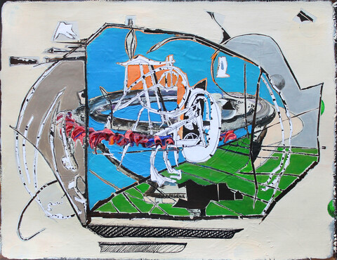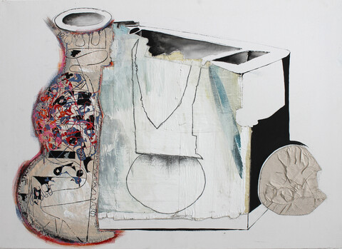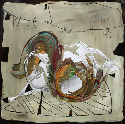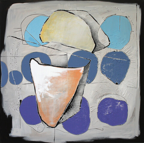 „Neben aller Inhaltlichkeit haben meine Arbeiten einen sehr konkreten formalen Hintergrund. Das Formale bestimmt den Rhythmus und die Fügung jeder einzelnen Arbeit, es ist gleichermaßen das Korsett, der Rahmen, in dem Bewegung festgehalten wird. Alles in der Schwebe - ein fragiler Zustand von Balance, der immer neu austariert wird durch statische, malerische Flächen und grafische Elemente.