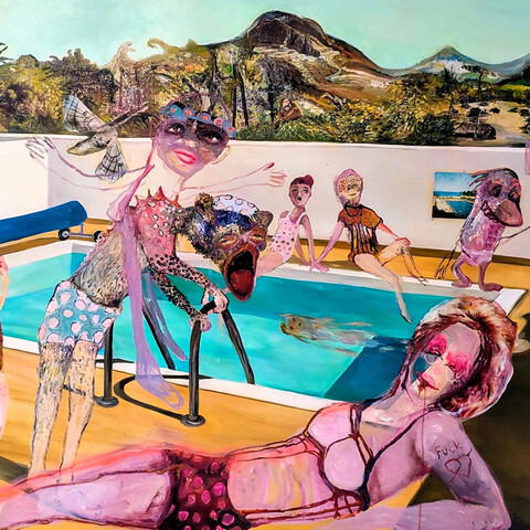 Juliane Hundertmark (1971 in Mainz geboren, lebt in Berlin) ist mit regelmäßigen Ausstellungen in New York, Los Angeles, London, Amsterdam, Brüssel und Barcelona die international umtriebigste Künstlerin im aktuellen "Schacher"-Programm. In ihren Arbeiten verbindet sie klassische Malerei mit einer einfallsreichen Collage-Technik zu einer individuellen, surrealen, gleichermaßen irritierenden, wie faszinierenden Bildsprache. Ihre zumeist in spießigen Umräumen platzierten grotesken Comicfigur-Tier-Mensch-Mischwesen sehen so aus, als hätte George Grosz gemeinsam mit Janosch Bilder gemalt.