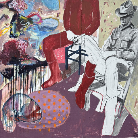 Manu Camille sucht nach dem Urmenschlichen, nach der Essenz des Menschen. Indem er beispielsweise Cowboys als Zigaretten rauchende Dandys in rosa Pullovern und als faul auf ihren Stühlen herumwippende Zeitgenossen zeigt, hinterfragt er Vorstellungen des vermeintlich Männlichen und Geschlechter-Klischees. Pop-Art, Street-Credibility und eine positive Message waren selten so beeindruckend vereint.