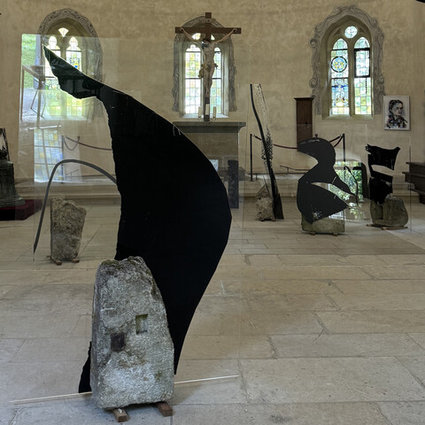Claudia Thorban (1949 geboren in Crailsheim, lebt in Satteldorf und Berlin) hat bereits in den Jahren 2012 bis 2020 mit ihren luftig angelegten Rauminstallationen die Halle 4-BesucherInnen verzaubert und innerhalb der Möglichkeiten der "One-Artist-Shows" mit bedruckten Acrylglasscheiben, Arbeiten auf Papier und kleinformatigen Fundstücken ein umfassendes ästhetisches Raumerlebnis präsentiert. 2026 geht "Schacher" einen Schritt weiter und nutzt die 100 Quadratmeter des "sculpture:squares", um den klassischen Skulpturen-Begriff auf eine reizvolle Weise zu hinterfragen.