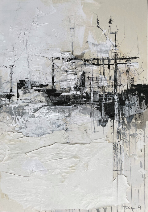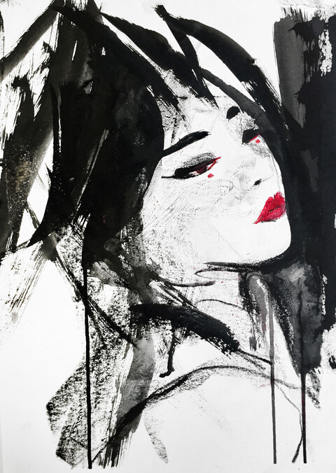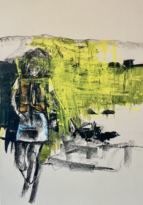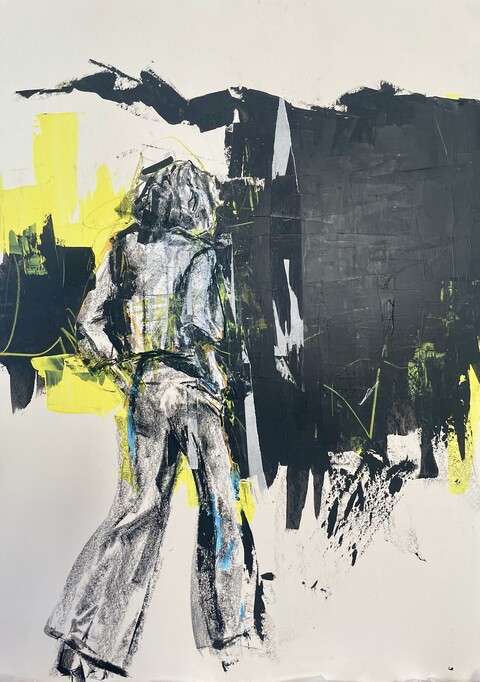 Ihre Zeichnungen halten das Flüchtige fest: spontane, leidenschaftliche Momente, die sich zugleich entziehen. Die Linie steht im Zentrum – mal kraftvoll, mal zart –, und mit wechselnden Materialien nähert sich die Künstlerin dem Motiv, um dessen Essenz einzufangen, ohne sie zu entzaubern.