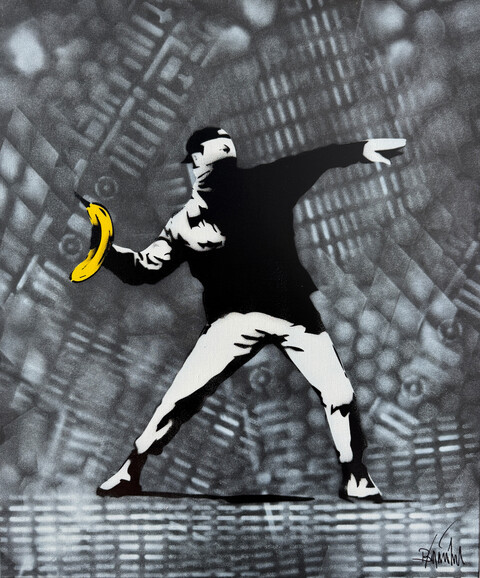 „Thomas Baumgärtel, unter dem Pseudonym BANANENSPRAYER deutschlandweit und international bestens bekannt, ist ein Künstler, der sich einer konkreten Einordnung zum Teil entzieht. Seine Werke sind bunt und fröhlich, aber auch immer wieder kritisch und oft politisch. Am besten kann man seine Arbeiten vielleicht unter den Begriffen „Graffiti“, „Street Art“ oder auch „Urban Pop Art“ einordnen. Sind doch die Grenzen zwischen Malerei, Graffiti, Performance und Action-Painting in seinem Werk fließend.