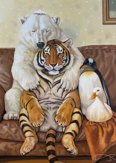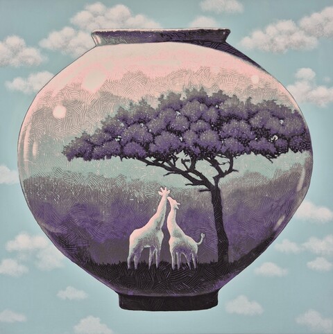 Park Ki Hoons work explores the interconnectedness of humans, animals, cities, and nature through his concept of NATROPOLI, portraying a shared ecological sensorium. Using layered canvases of pigment and stone powder, he carves into the surface, revealing light and depth, a process reflecting patience, time, and compassion. His paintings balance asymmetry and subtle monochrome hues, evoking quiet coexistence without overt human presence. Over time, his vision evolved into HUMANTOPIA, depicting gentle, conscious human-animal-environment interactions. Parks art invites viewers to slow down, observe, and reconsider their relationship with the living world, embodying the aesthetics of open coexistence.