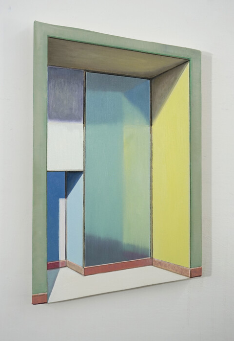 The artist's approach to highlighting the bizarre nature of everyday life is so subtle that one only notices the absurd humor once one has already accepted the fictionality of the representation as reality. The intensity and presence of an intermediate space, an in-between that extends between the tension of allusion to reality and fictional being, comes to life in the artist's collages and drawings.